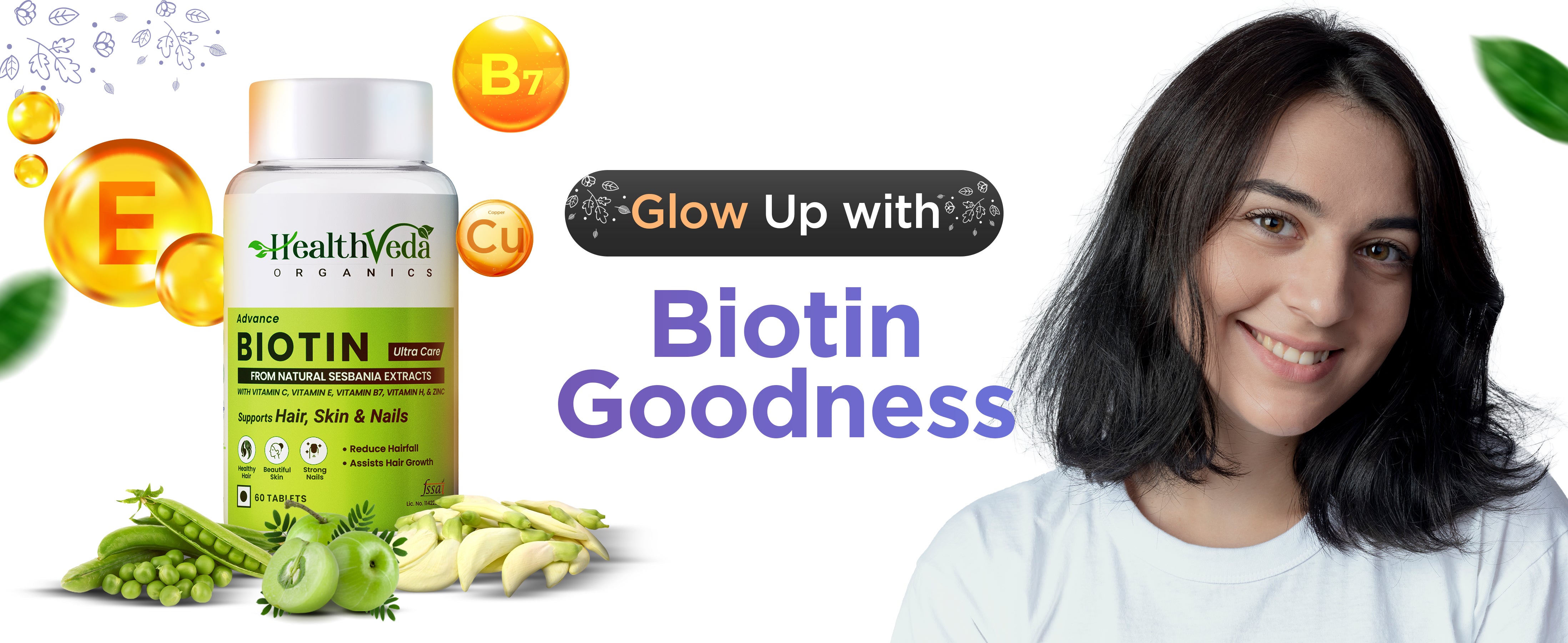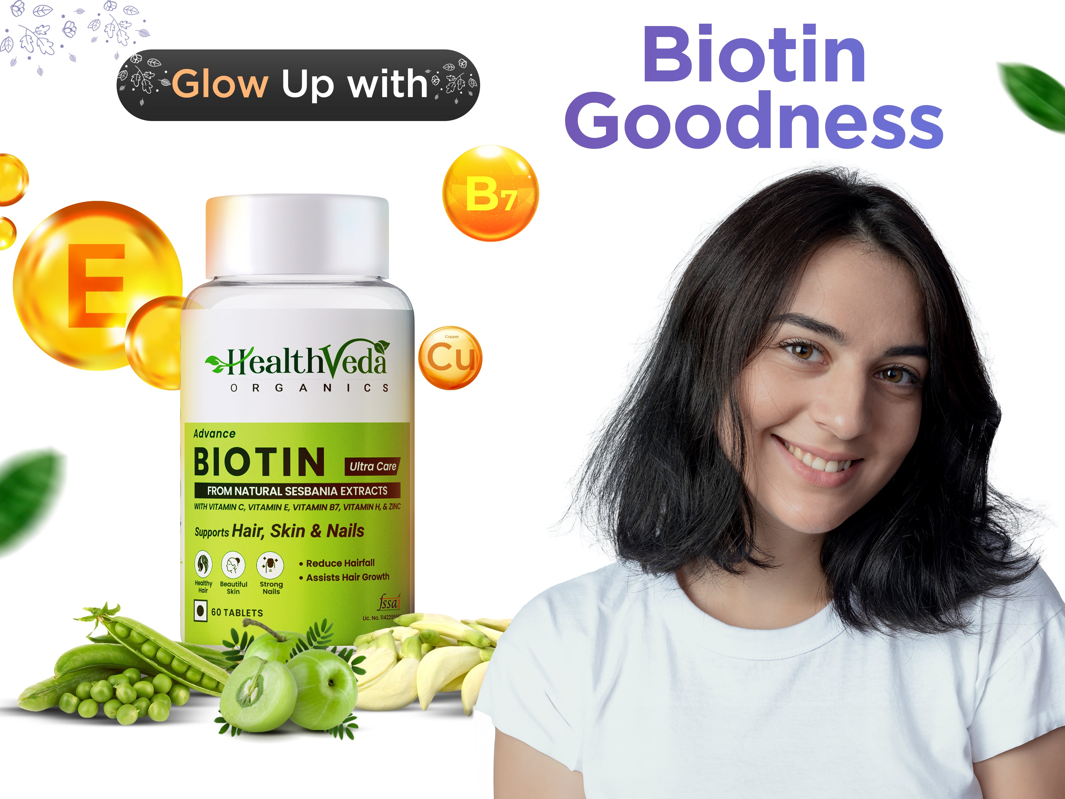 - SUPPORTS RADIANT SKIN: Biotin plays a vital role in metabolizing fat, which in turn gives you shiny & glowing skin. Try out Health Veda Organics Biotin tablets to enhance your beauty.