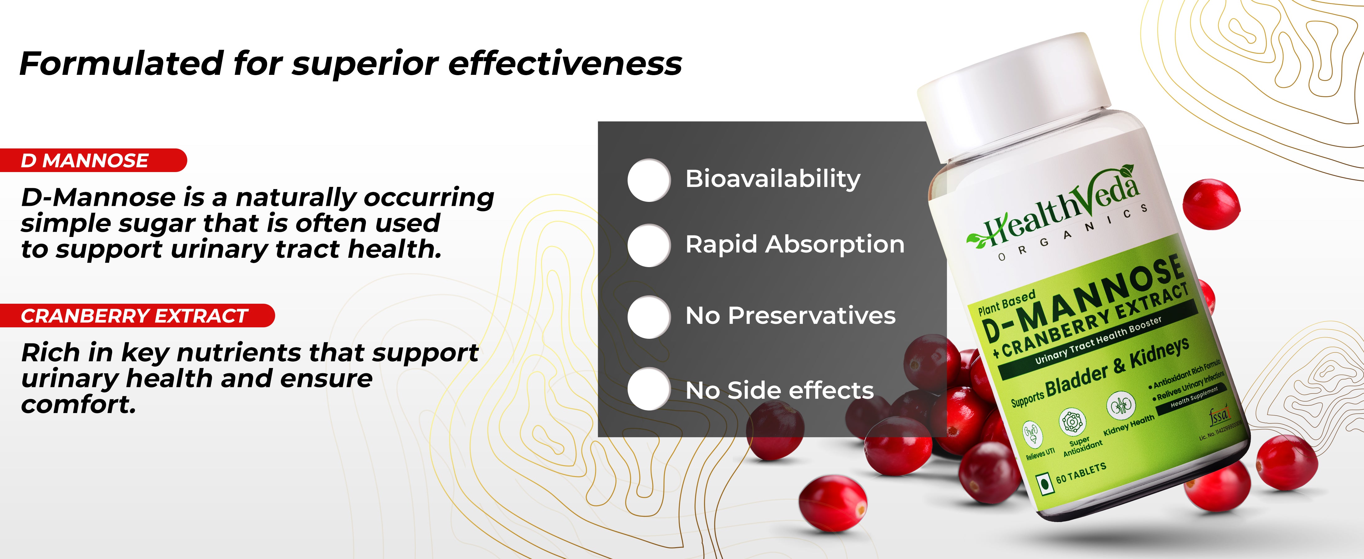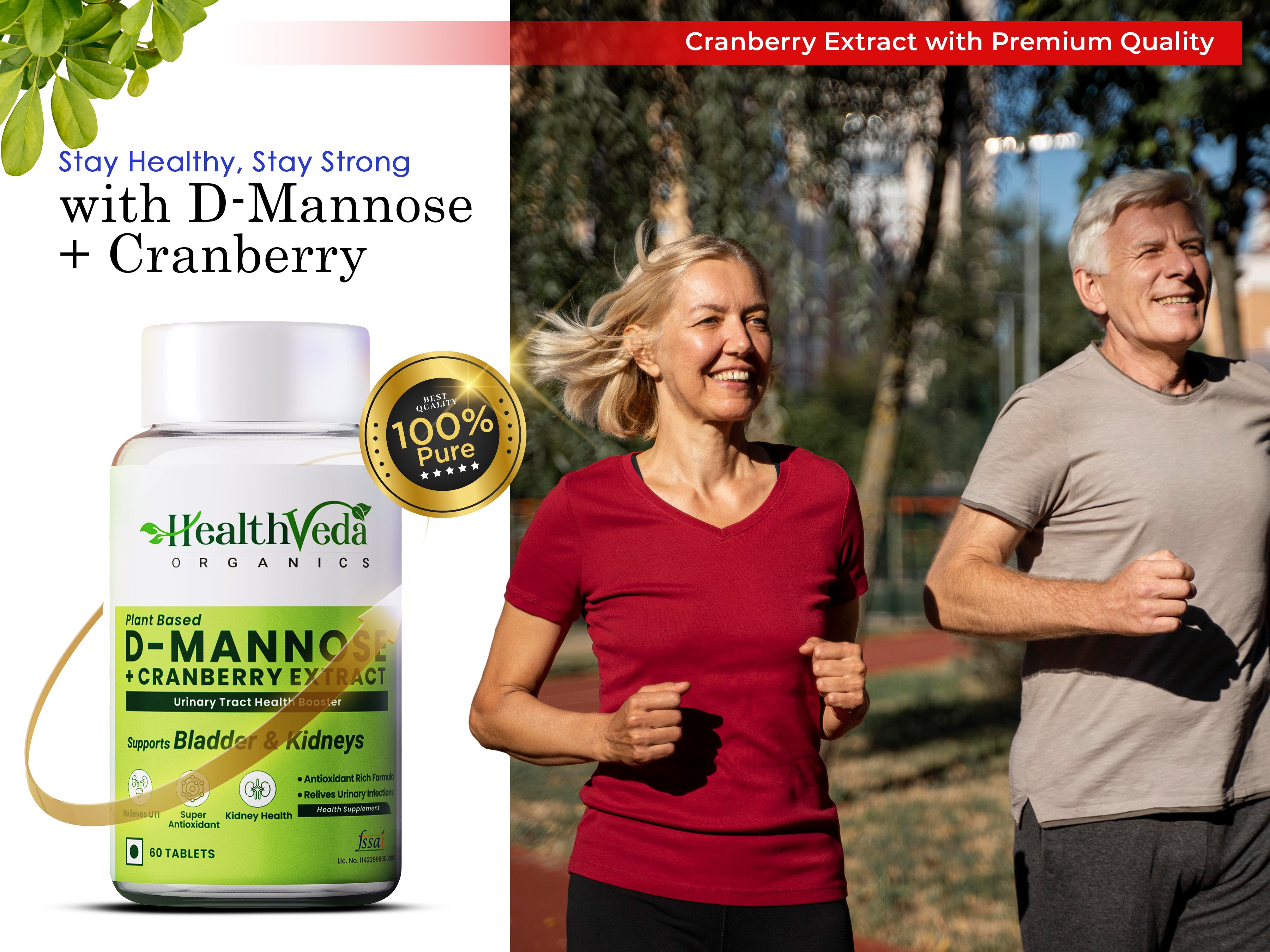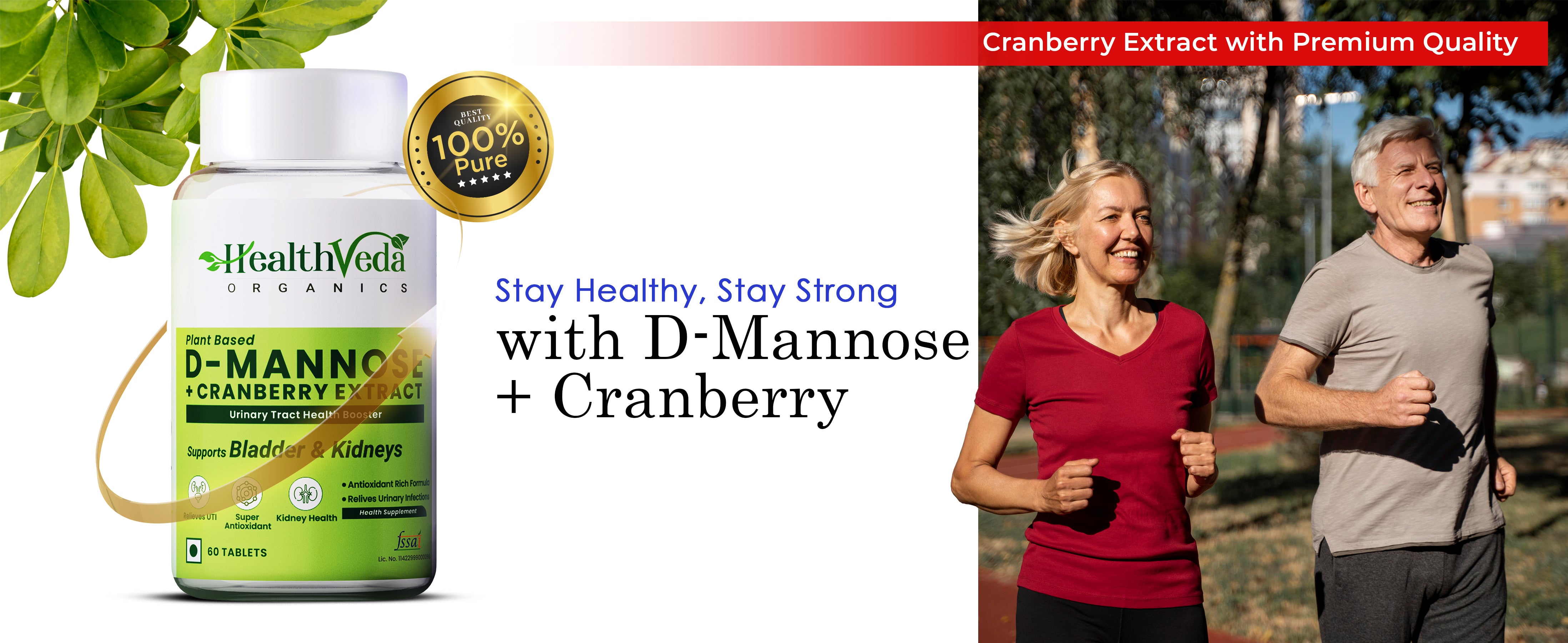 Health Veda Organics D-MANNOSE + CRANBERRY EXTRACT Tablets are rich in antioxidants without any side effects and provide long-term urinary support. Unique, maximum strength blend of natural ingredients specially formulated to target persistent urinary tract infections & fight infection.