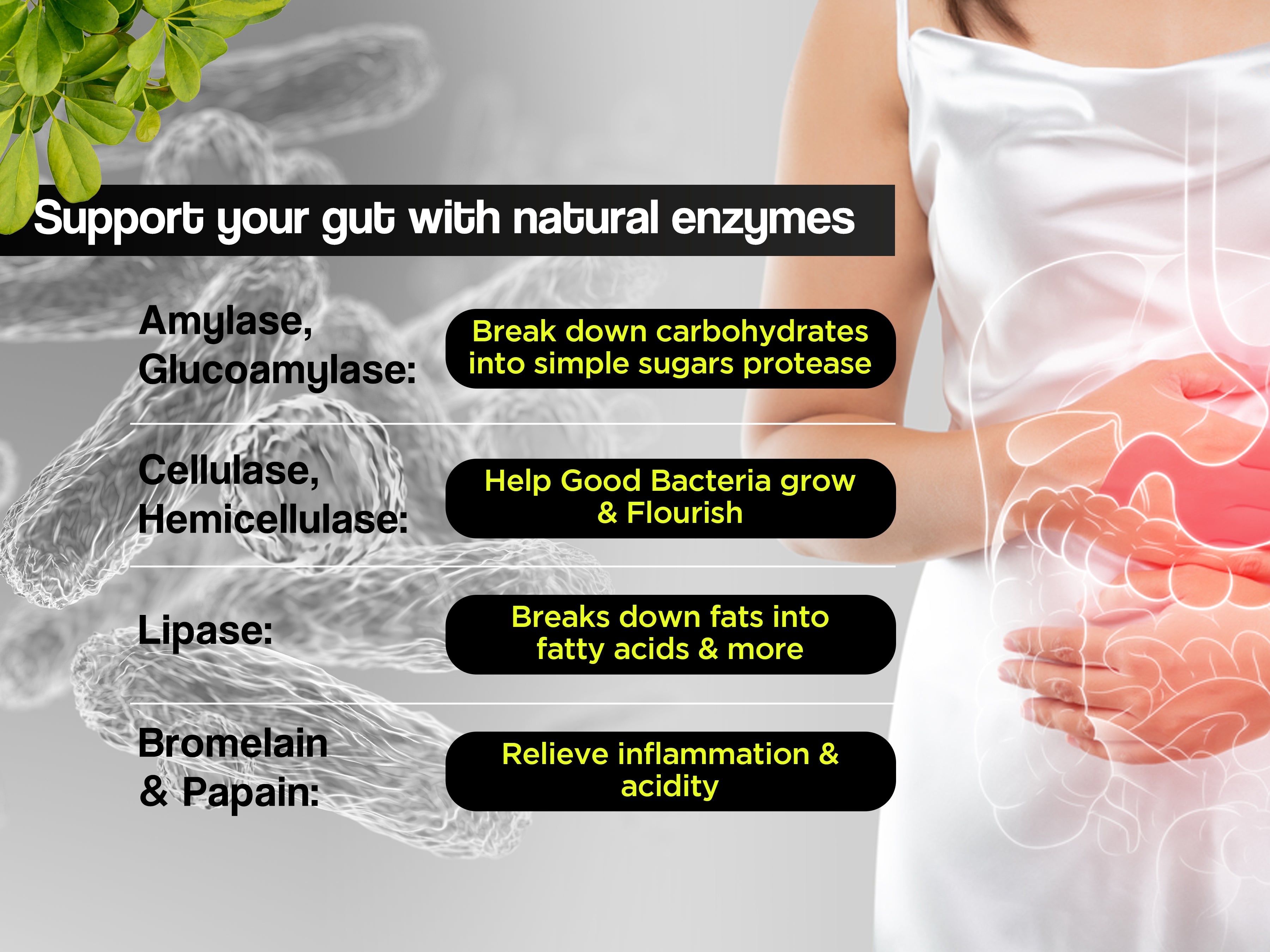 - SUPPORTS SMOOTH DIGESTION & HEALTHY GUT: These Digestive Enzyme Capsules are your daily dose for a healthy gut. The unique blend of enzymes enhances digestion efficiency and decreases fatigue. It keeps your gut health in place, energizing you throughout the day.