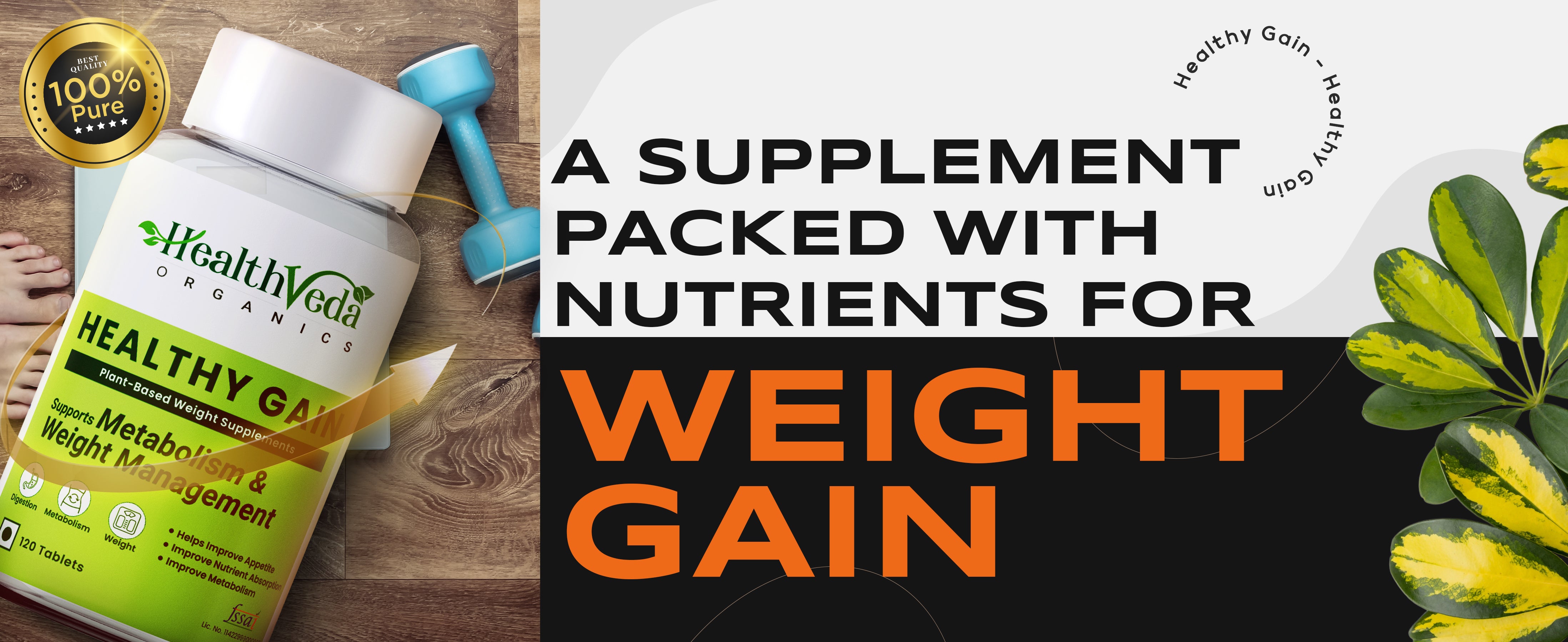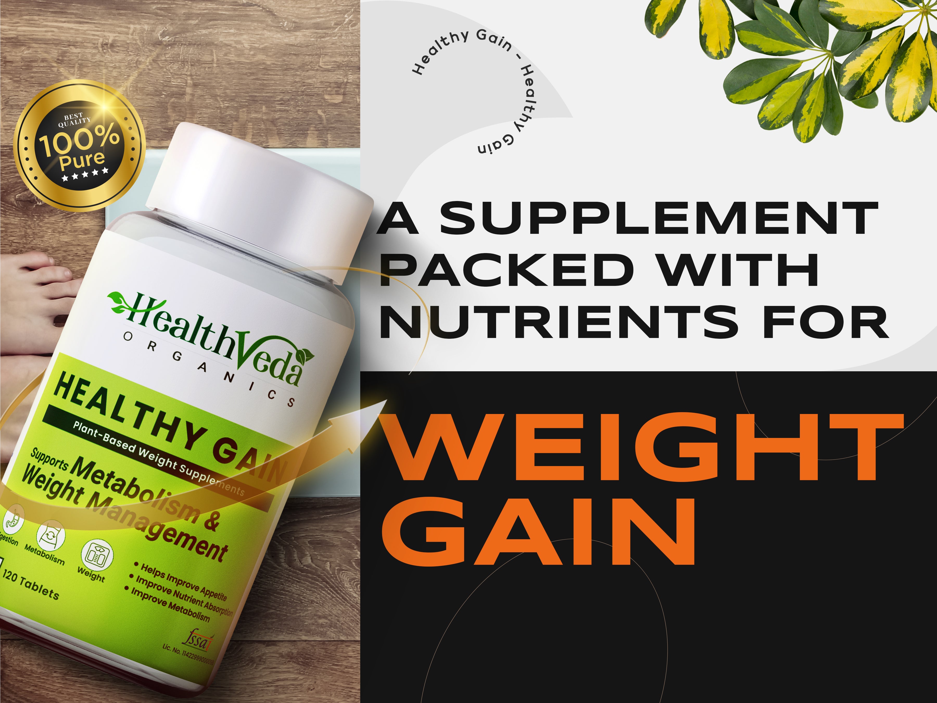 Health Veda Organics Healthy Gain 120 Tablets | A Herbal Weight Gainer | Help to Improve Metabolism, Digestion, Appetite, Weight Gain & Mass Muscle Growth for Both Men and Women