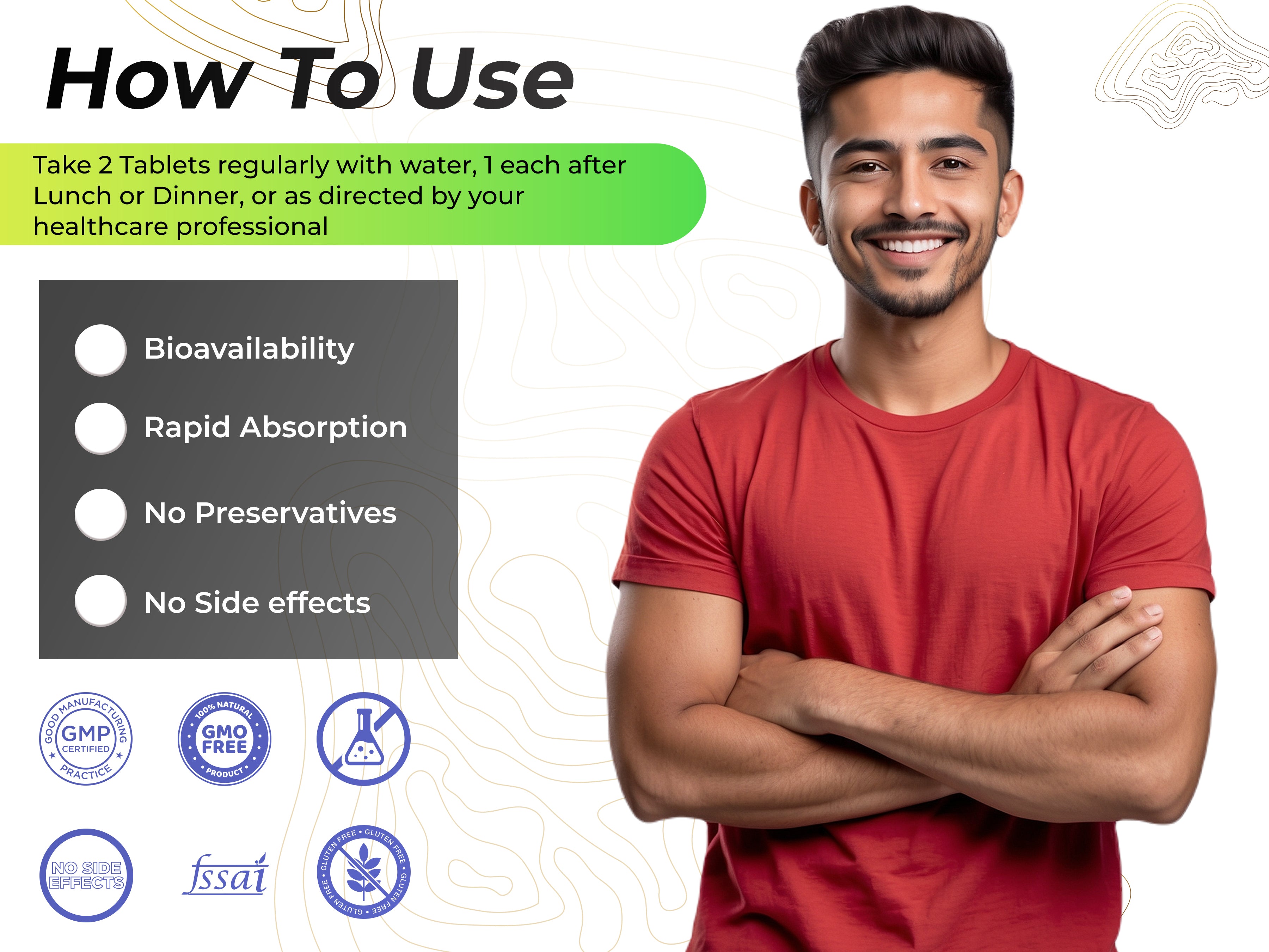 +Each product has specific dosage instructions mentioned on the packaging. Generally, take the supplements with water after a meal for better absorption.