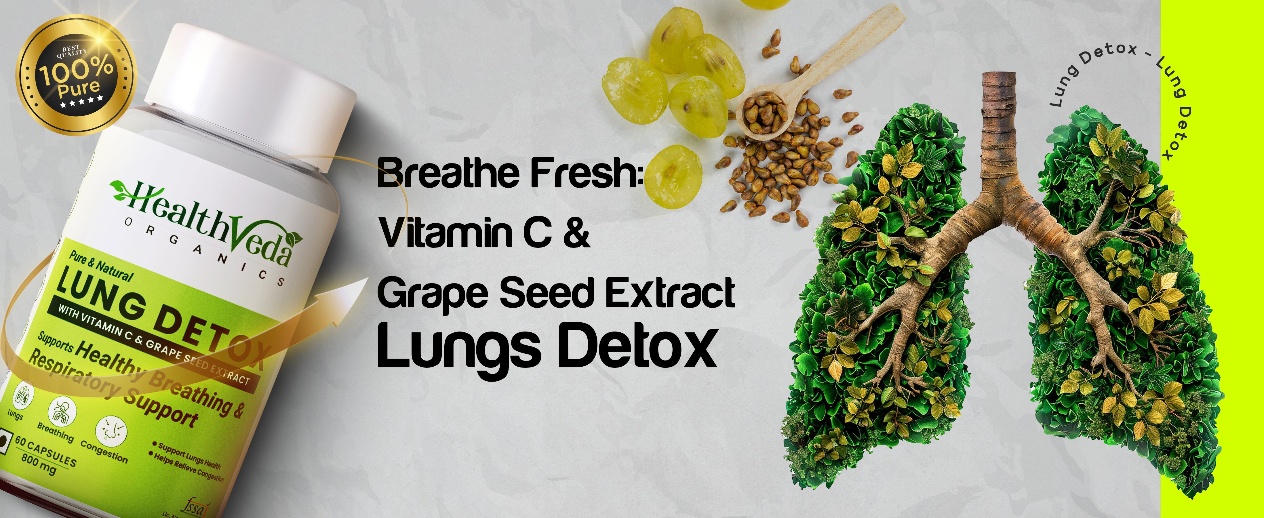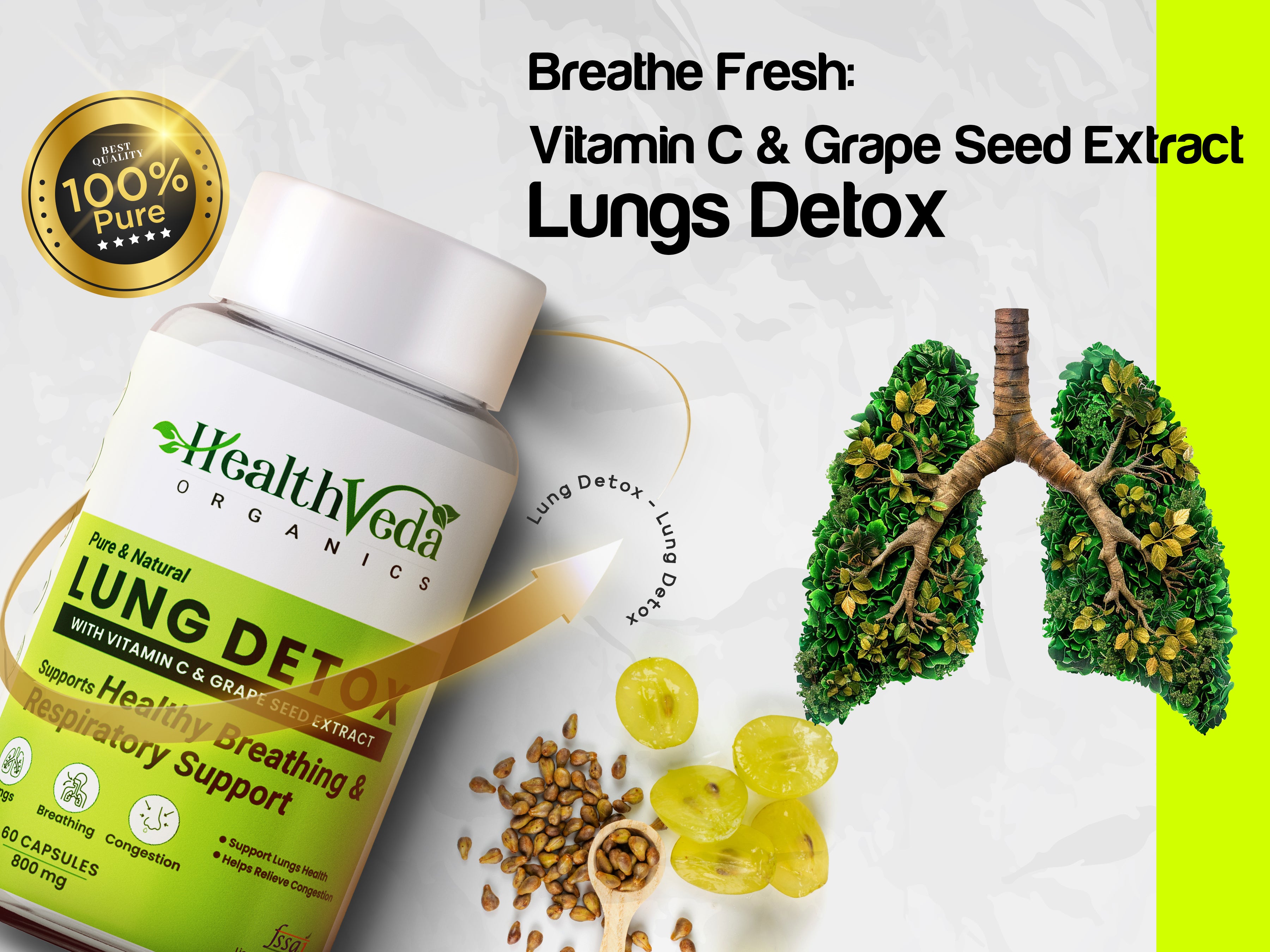 Health Veda Organics Lung Detox with Vitamin C & Grape Seed Extract | 60 Veg Capsules | Supports Healthy Breathing| For Detoxification of Lung & Immunity | For Both Men & Women