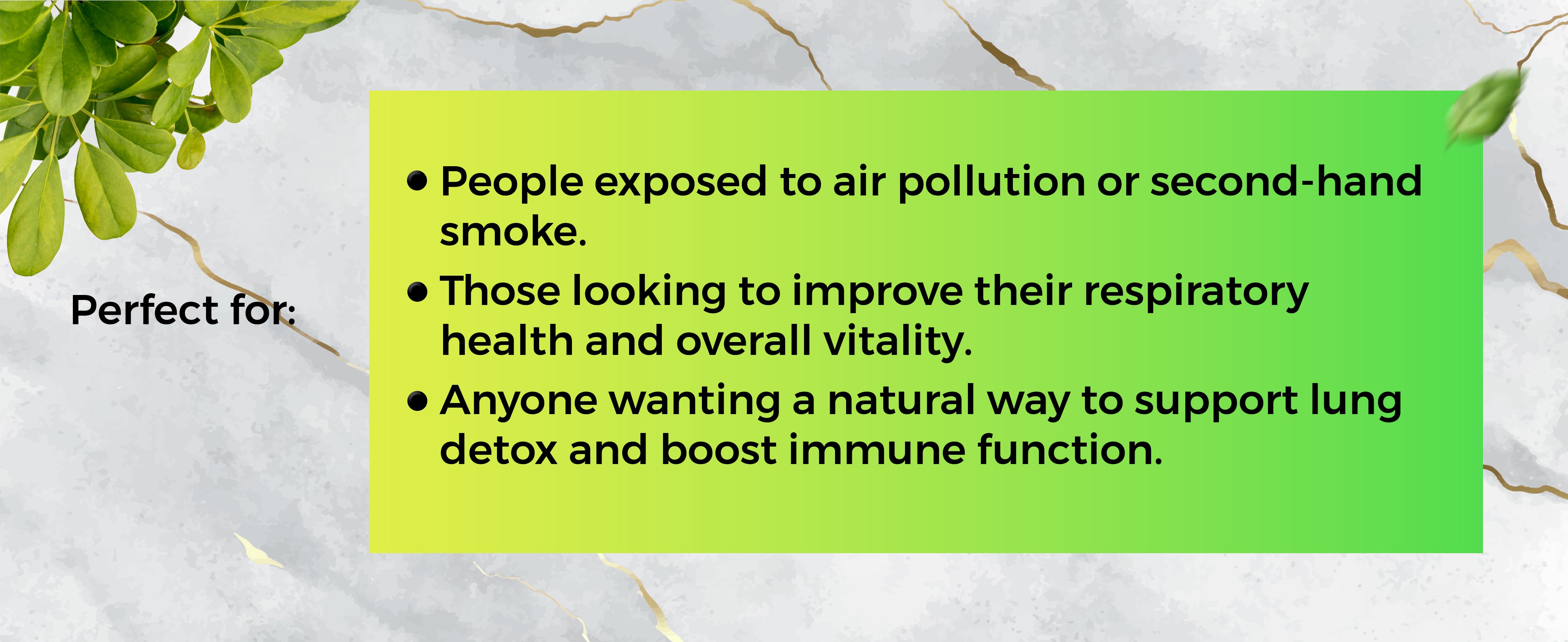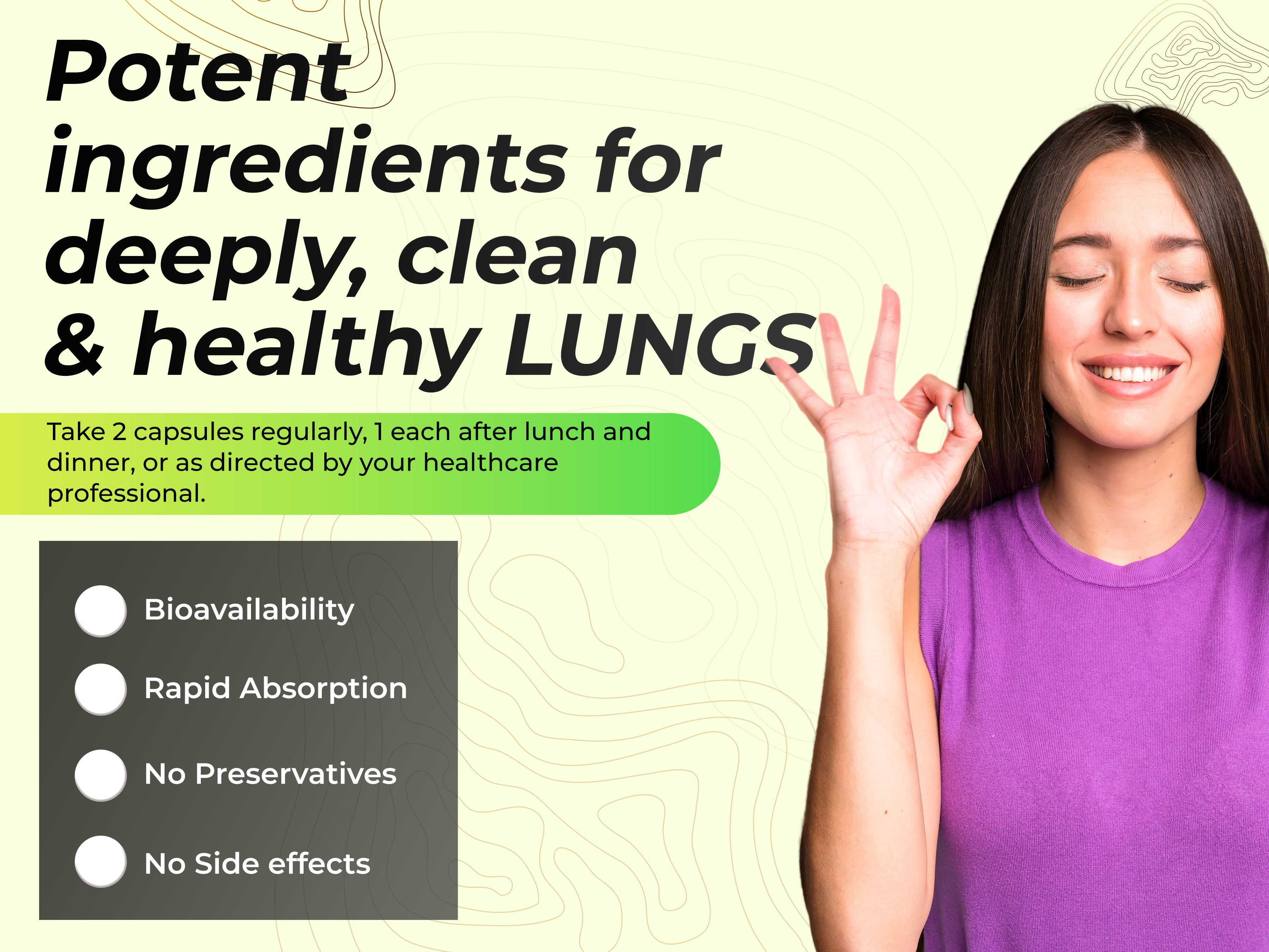 - CLEANSES & DETOXIFIES LUNGS: The natural ingredients present work together to cleanse and detoxify the lungs. These ingredients have anti-inflammatory and antioxidant properties. They help to reduce inflammation, clear mucus, and help improve breathing.