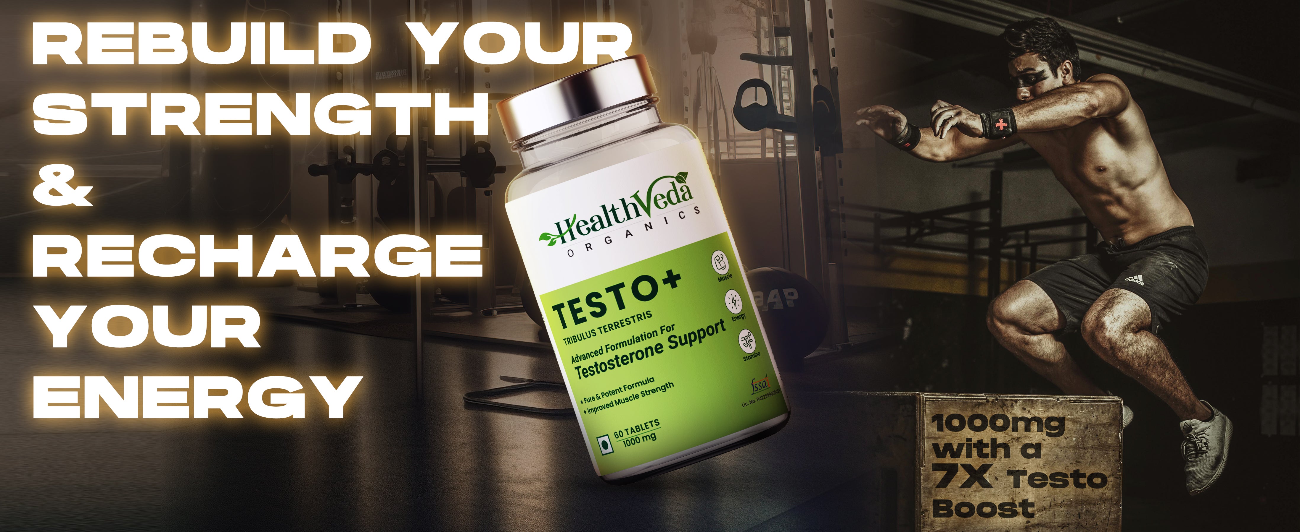 Health Veda Organics Plant Based Testo+ | With Tribulus, Ashwagandha & Kaunch Beej | Wellness & Vitality Support | 60 Veg Tablets for Men