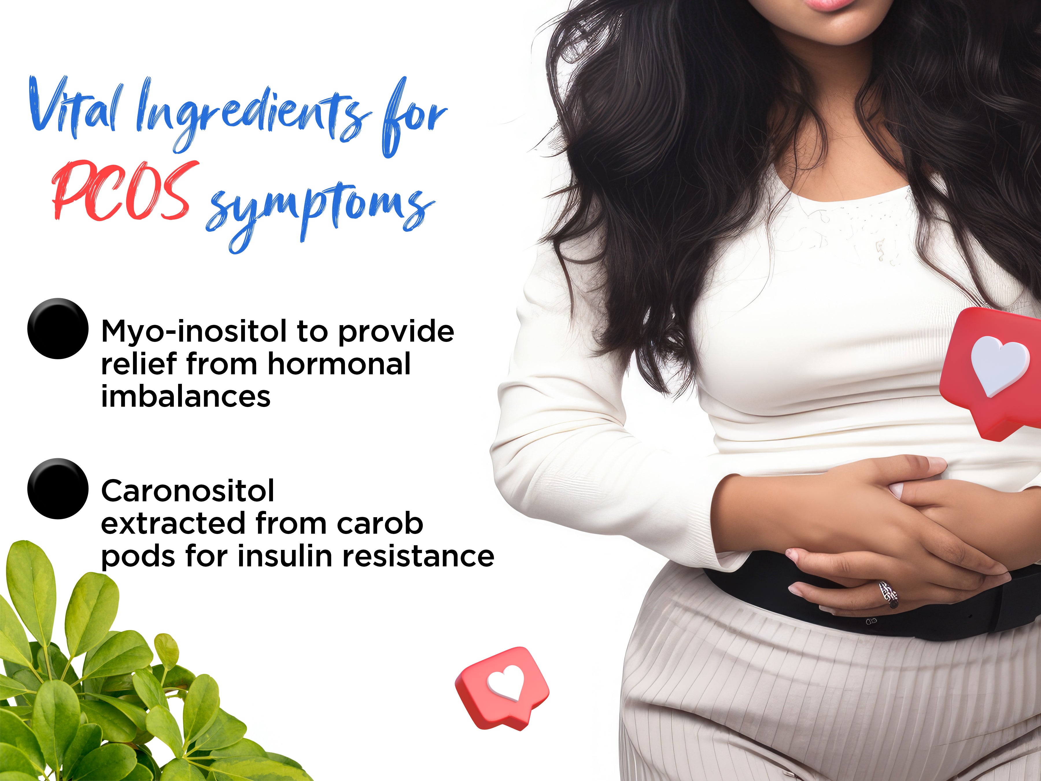 - POTENT COMBINATION: A powerful blend of Myo-Inositol, Caronositol, Folate, Chromium, Calcium & Vitamin D in one tablet offers multiple benefits to women. Also, lower androgens levels are responsible for acne, thus reducing excessive facial hair growth, managing PCOS symptoms & hormonal balance levels.