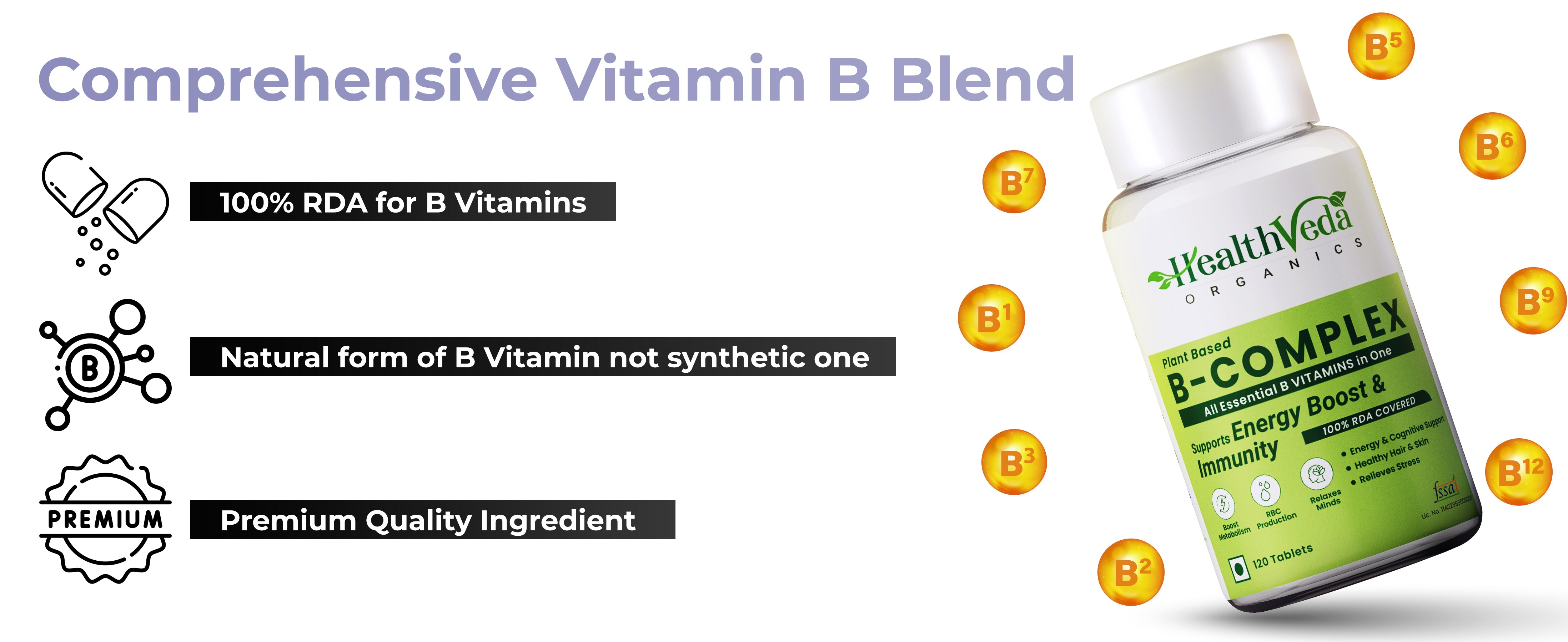 - ENHANCES METABOLISM: HealthVeda Organics Plant-Based B- Complex Tablets improve the process of converting food into energy, strengthen metabolism & keep you active & energized.