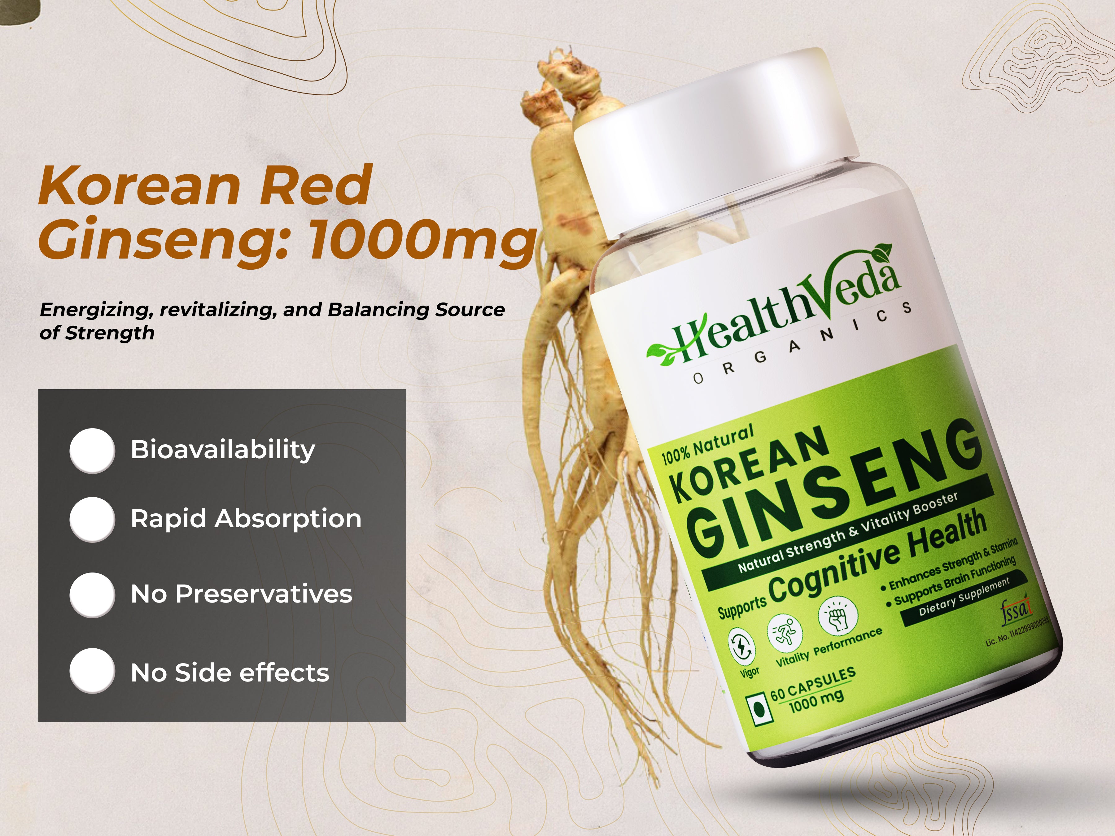 - SUPPORTS BRAIN FUNCTION: Health Veda Organics Korean Red Ginseng Capsules work to reduce stress levels. It helps to enhance thinking, concentration, and endurance.