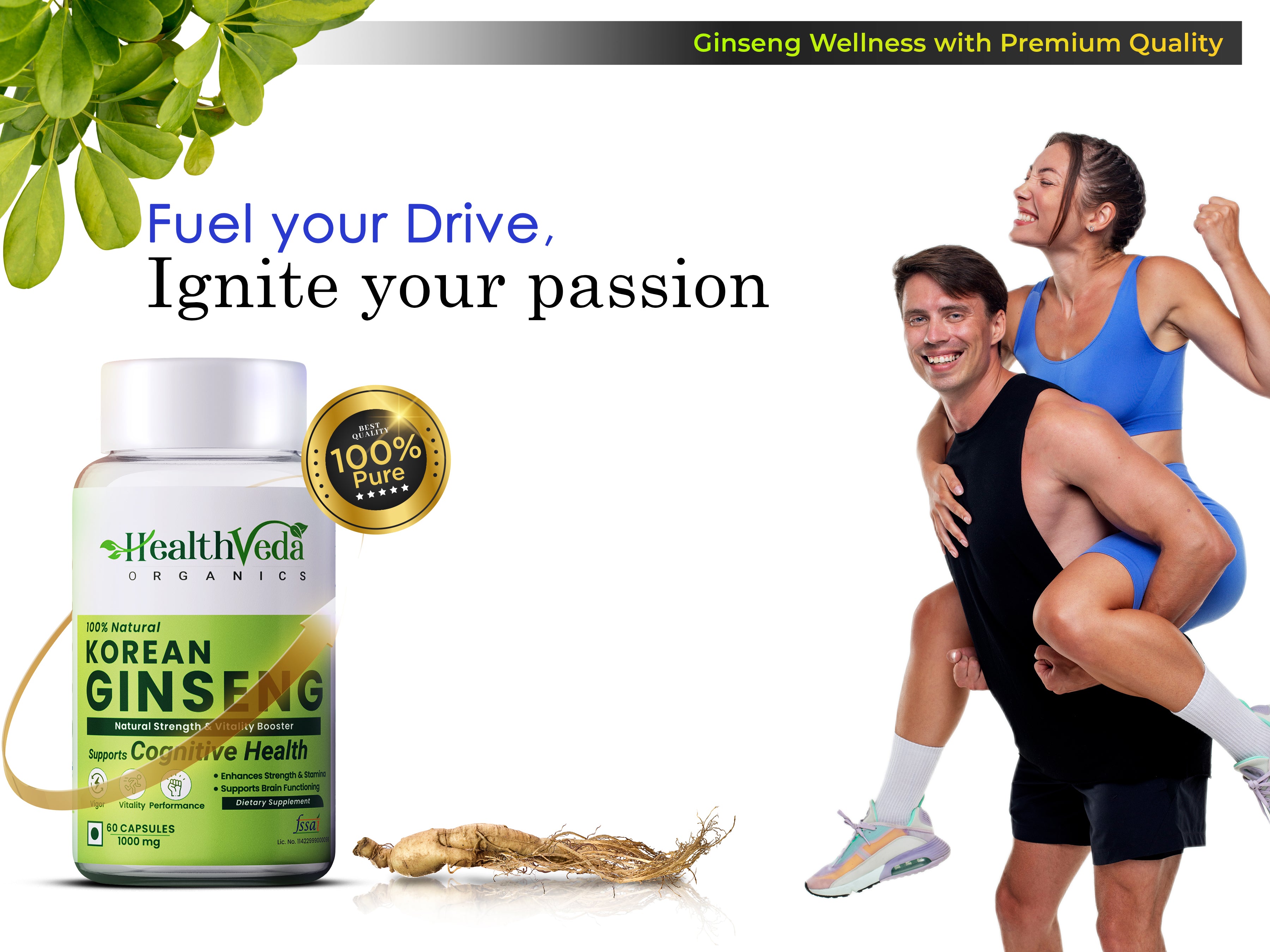 Health Veda Organics Korean Red Ginseng Capsules are all natural and pure with no added preservatives. Restore and enhances overall wellbeing making the whole body healthy. This powerful supplement effectively boosts your performance levels, helping you focus, and uplifts your mood, so you're more productive and healthy. It will allow you to do more throughout the day & also help in managing stress & anxiety for better concentration & mood.