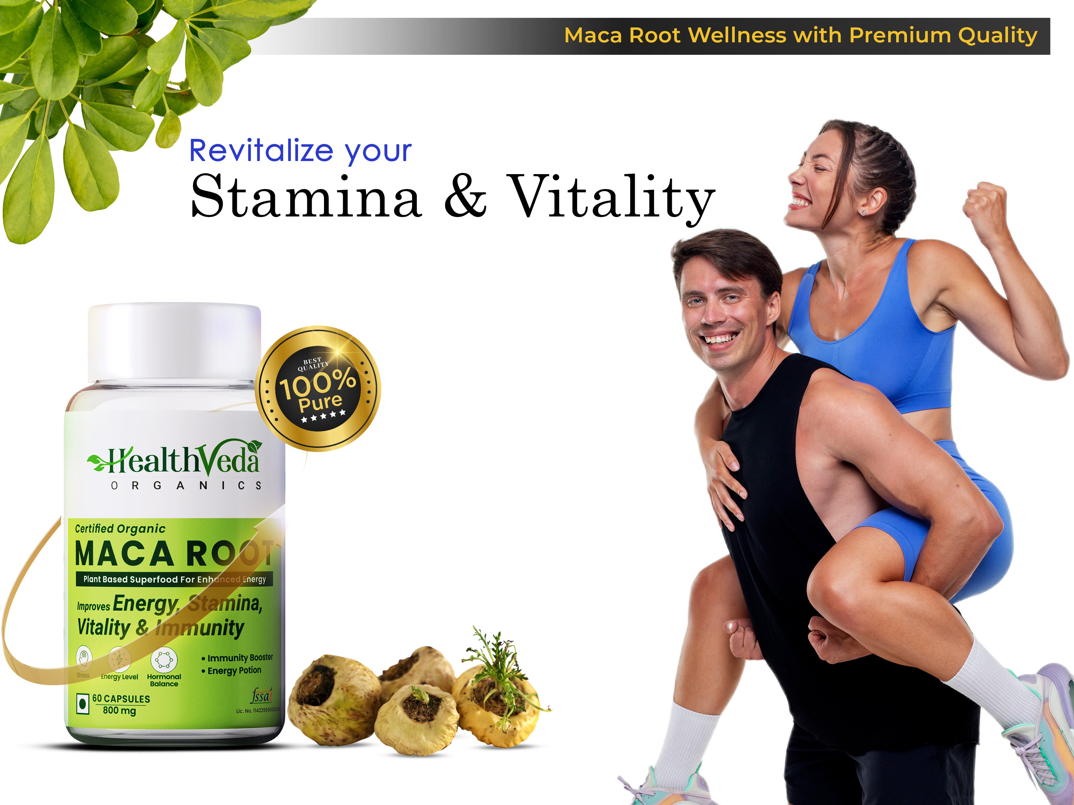 - BOOSTS REPRODUCTIVE HEALTH: HealthVeda Organics Maca Root Capsules are packed with nutrients that boost reproductive health & charge you with energy. It also enhances stamina & promotes a healthy life.