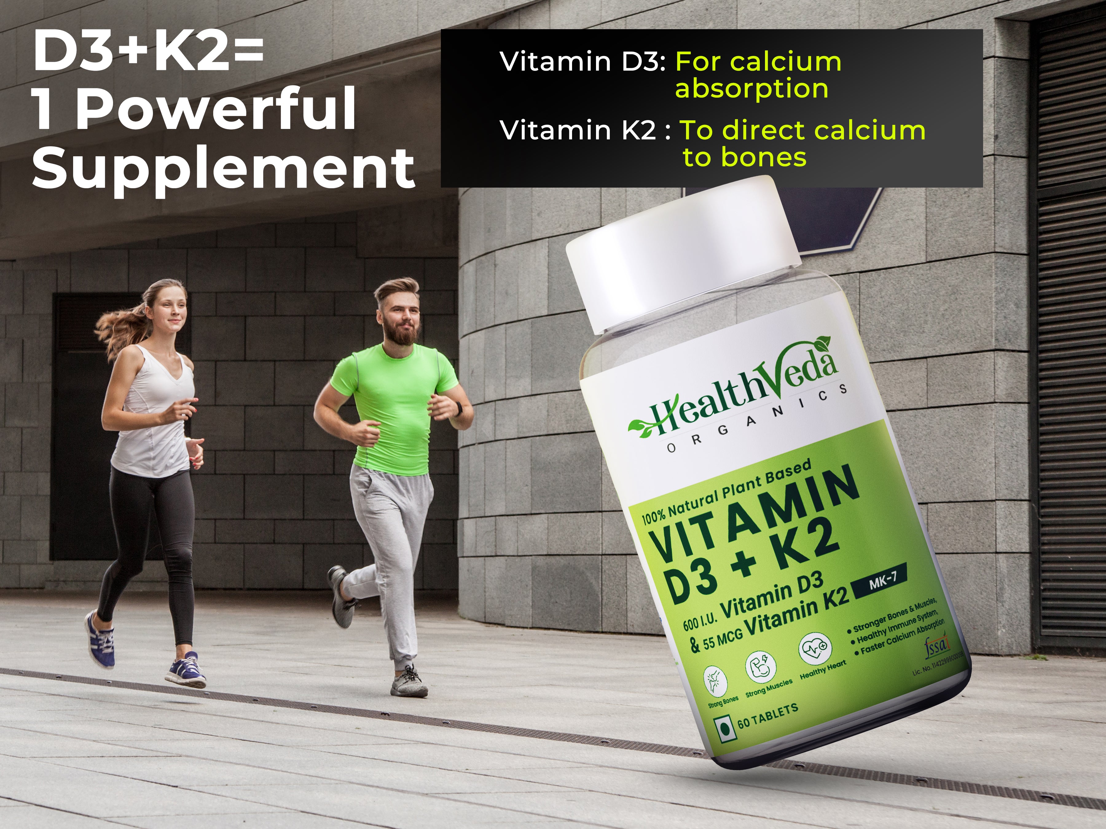 - POTENT BLEND OF VITAMIN D3: Health Veda Organics Vitamin D3 + K2 tablets have a potent blend of Vitamin D3. It has a lot of benefits, including bone, teeth, and muscle health, and overall well-being. Supports healthy immune system function and detoxifies your body.