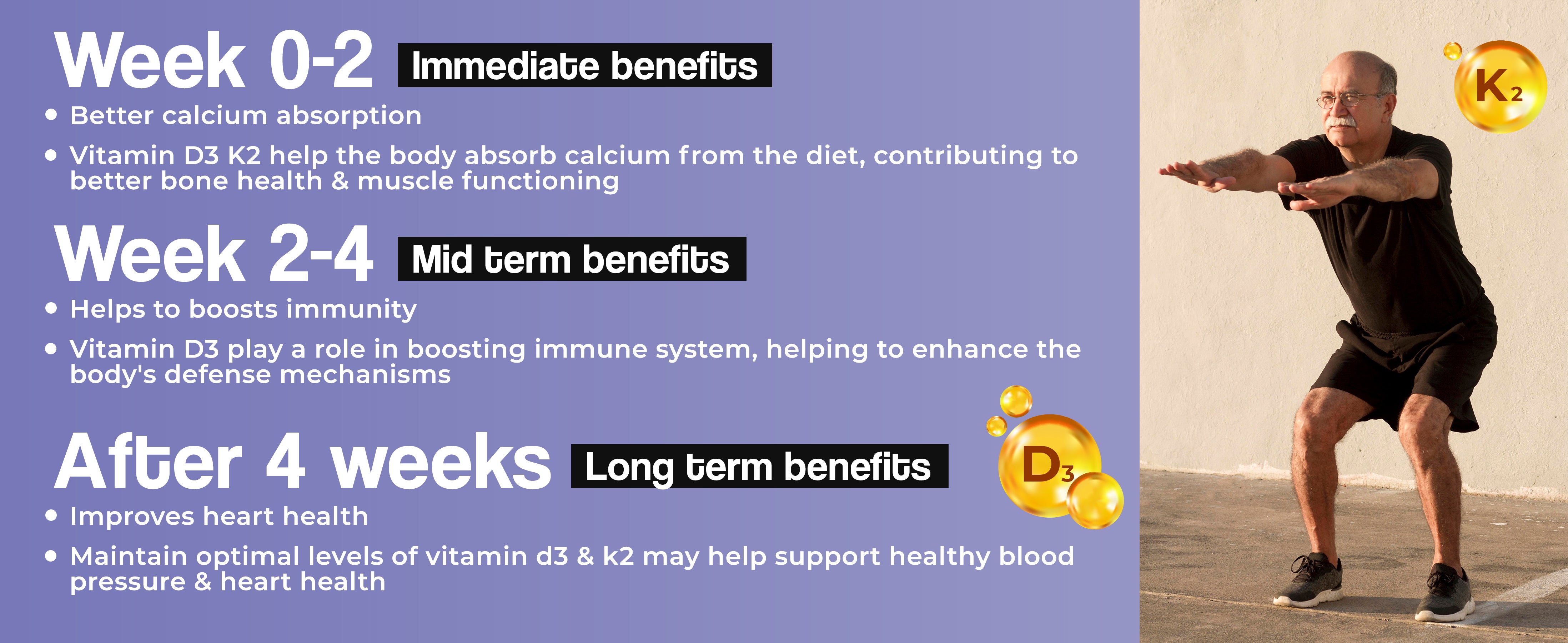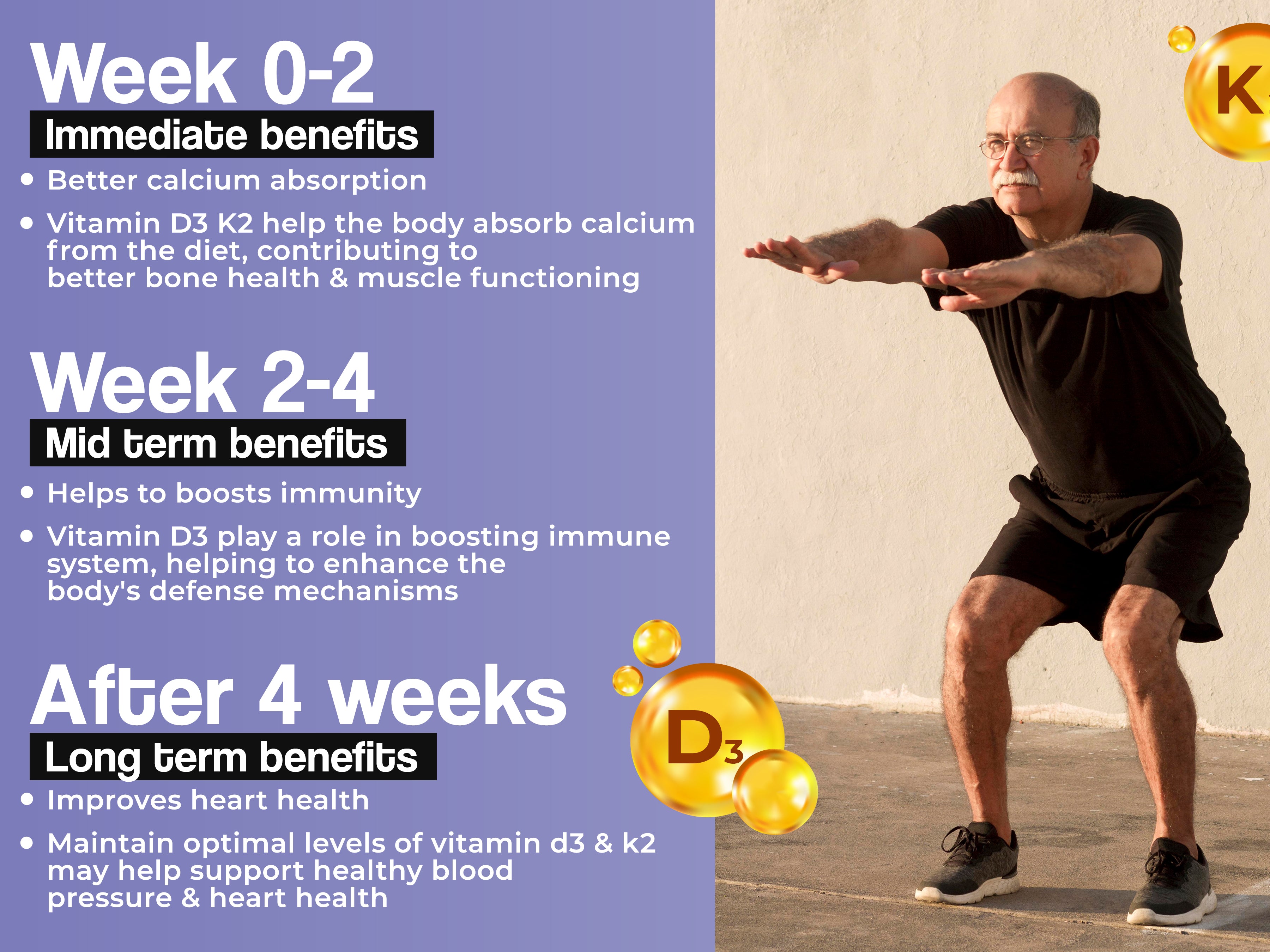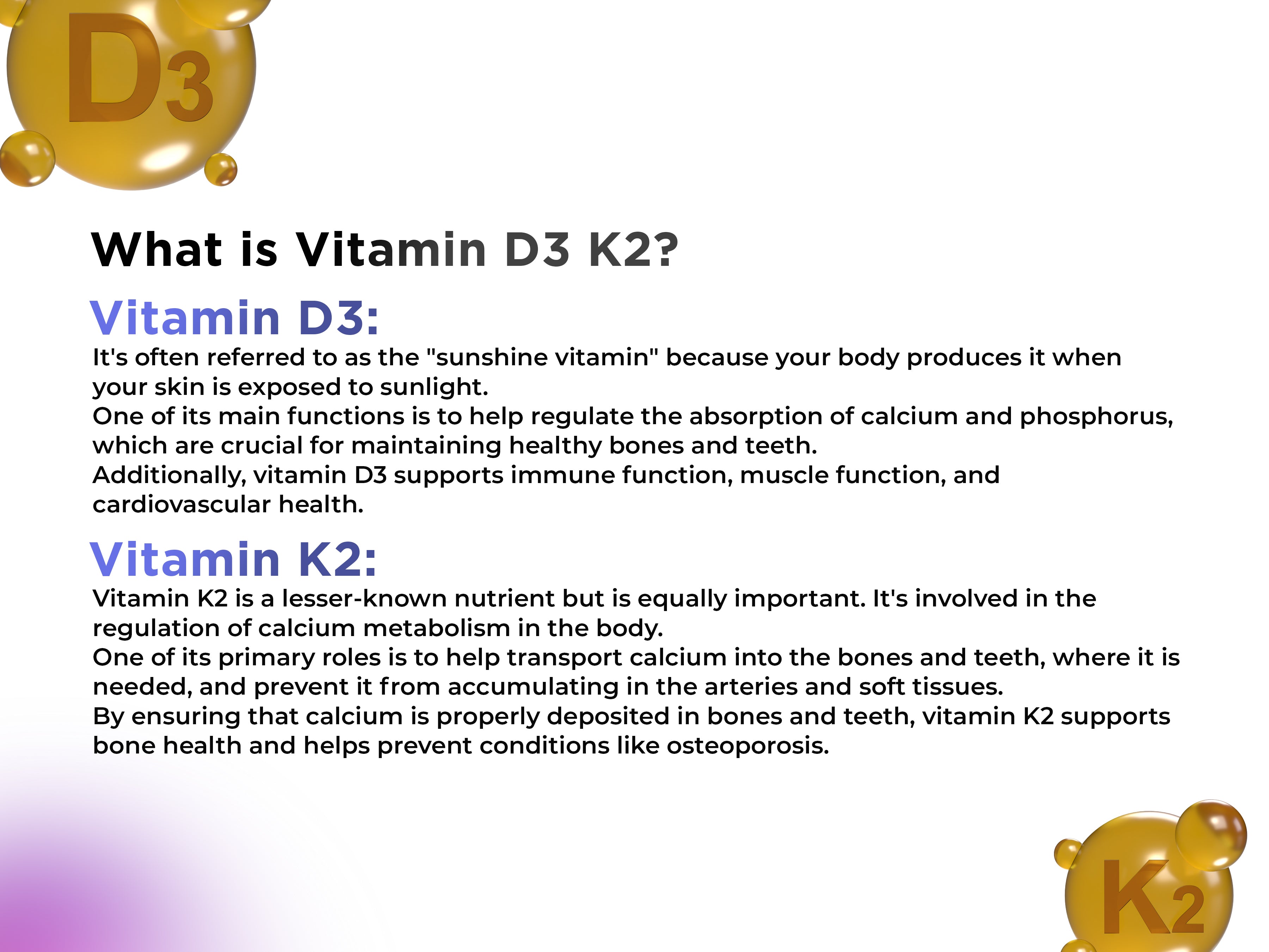 - HEALTHY HEART & MUSCLE STRENGTH: Vitamin D3 benefits skeletal muscle development and optimizes muscle strength. It also shows anticoagulant and anti-atherosclerosis effects improve cardiovascular function. Moreover, vitamin K2 is a crucial vitamin for healthy heart functioning.