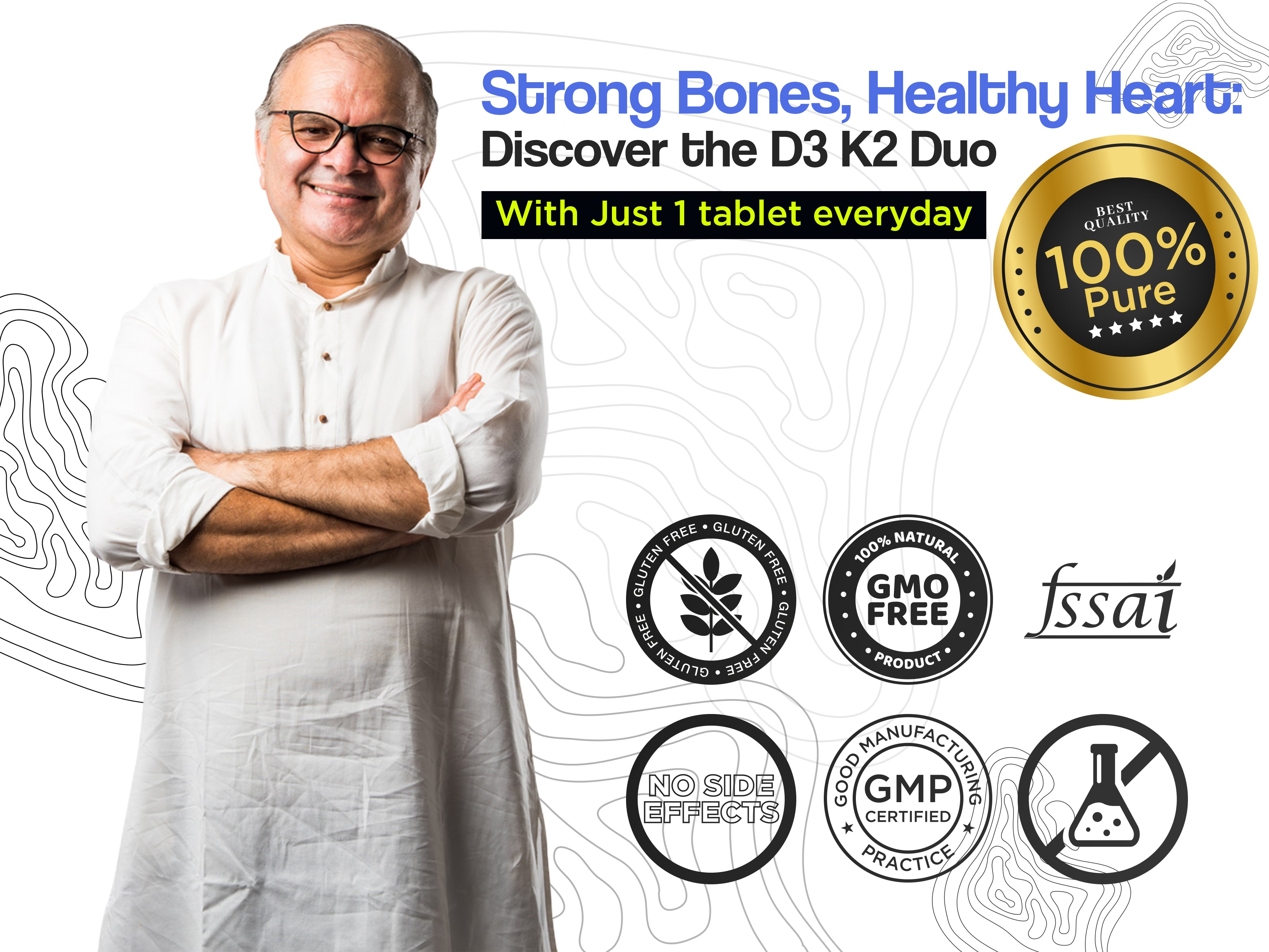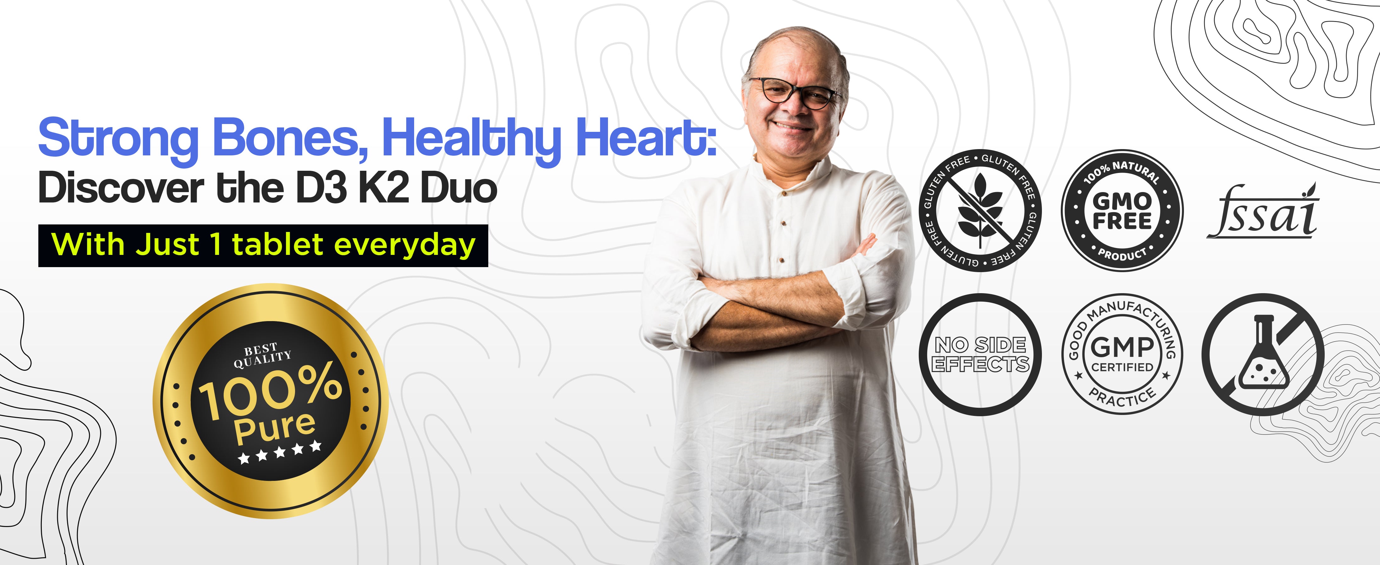 Health Veda Organics Vitamin D3 + K2 Tablets is a perfect combination that helps you stay healthy by boosting your immune system. It encourages proteins in white blood cells that combat infections and is an immunity booster for adults. Vitamin K2 also helps synthesize crucial bone proteins and thus supports healthy bone metabolism. Both vitamin D3 and K2 work to foster bones most naturally. Vitamin D3 enhances calcium absorption; on the other hand, vitamin K2 stimulates bone metabolism. This coordination effectively transports calcium to your entire body and supports bone health.